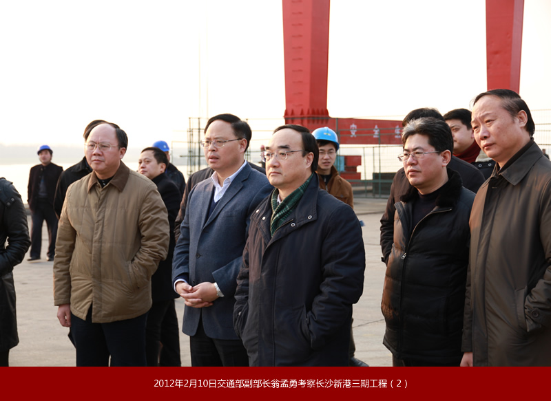 2012年2月10日,交通運輸部黨組副書記、副部長翁孟勇來長沙新港考察時強調(diào):長沙新港變化一次比一次大,當前要借助湖南加大水運發(fā)展力度的有利契機,加快樞紐、港口和湘江2000噸級航道提升建設(shè),更好地服務(wù)經(jīng)濟社會和航運的持續(xù)發(fā)展。